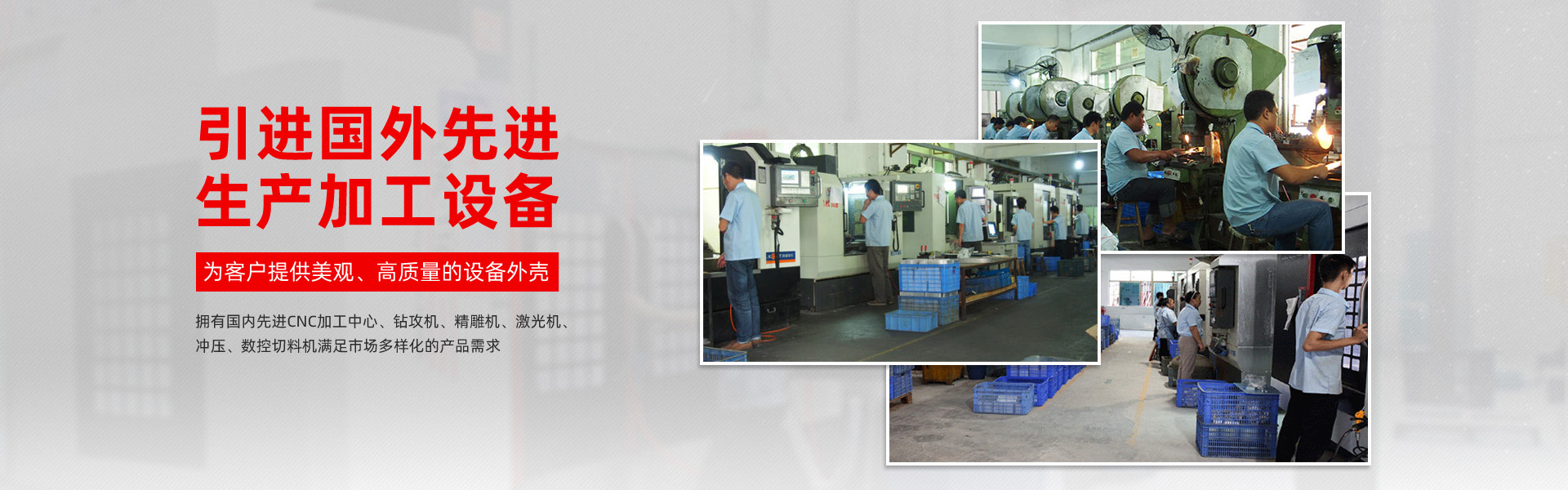 生產(chǎn)設(shè)備采用國內(nèi)CNC加工中心,鉆攻機(jī),精雕機(jī),激光機(jī),滿足市場(chǎng)多樣化的產(chǎn)品需求!